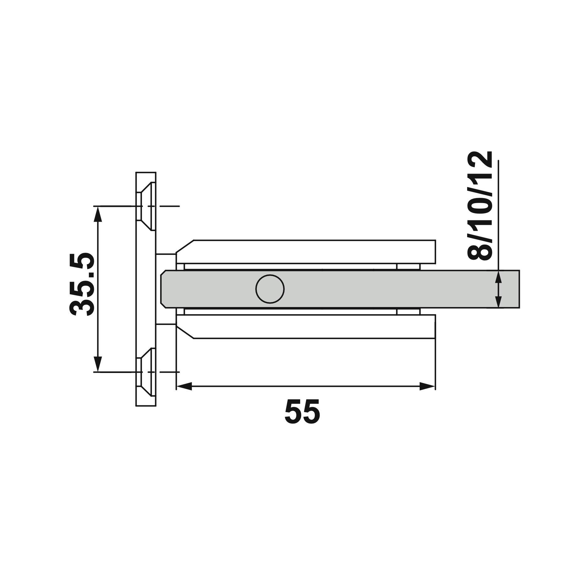 Cam kalınlığı: 8 - 10 - 12 mm. Malzeme: Pirinç. Donanım: Her iki yönde en fazla 25° açık konumdayken otomatik kapanma. Montaj: Duvardan cama