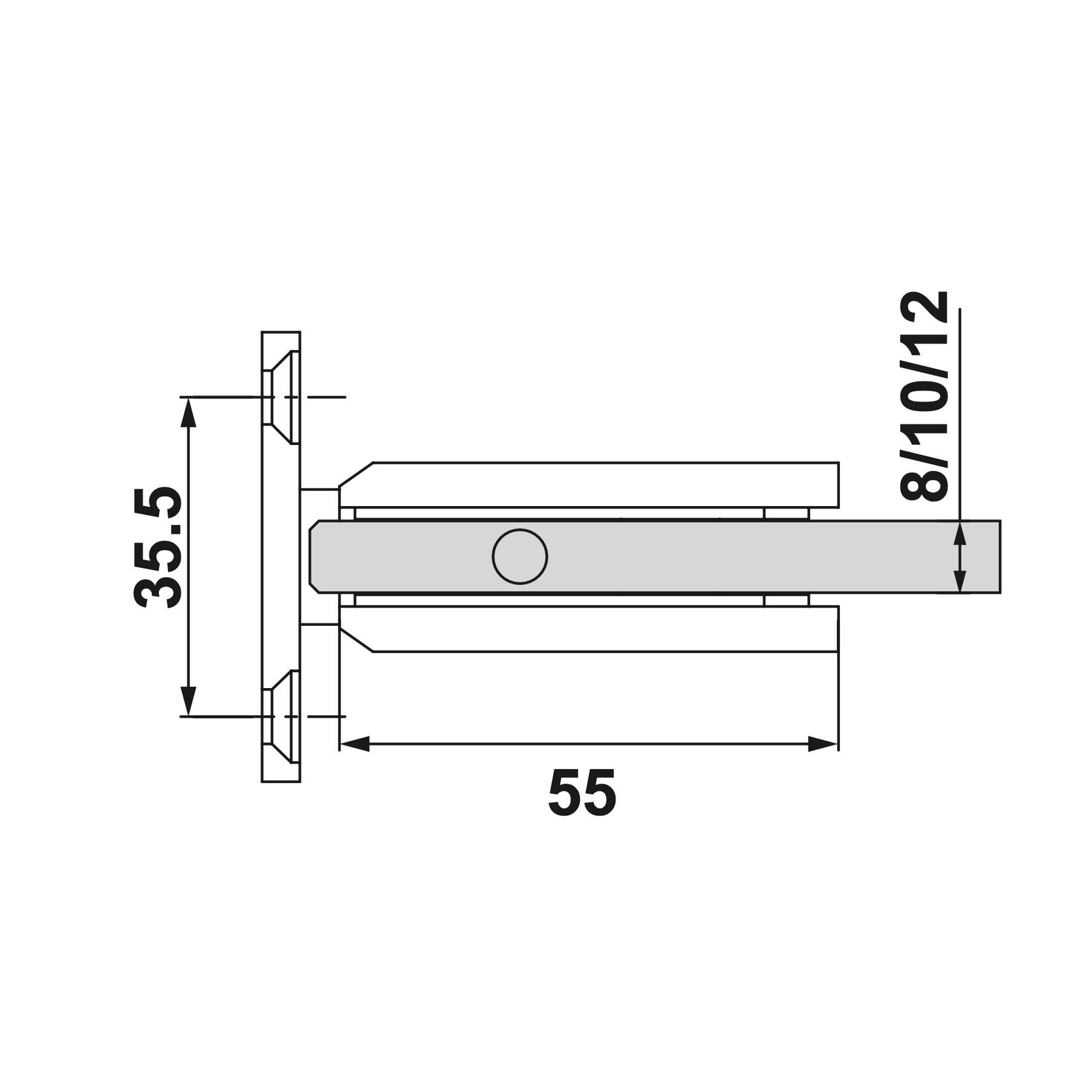 Cam kalınlığı: 8 - 10 - 12 mm. Malzeme: Pirinç. Donanım: Her iki yönde en fazla 25° açık konumdayken otomatik kapanma. Montaj: Duvardan cama