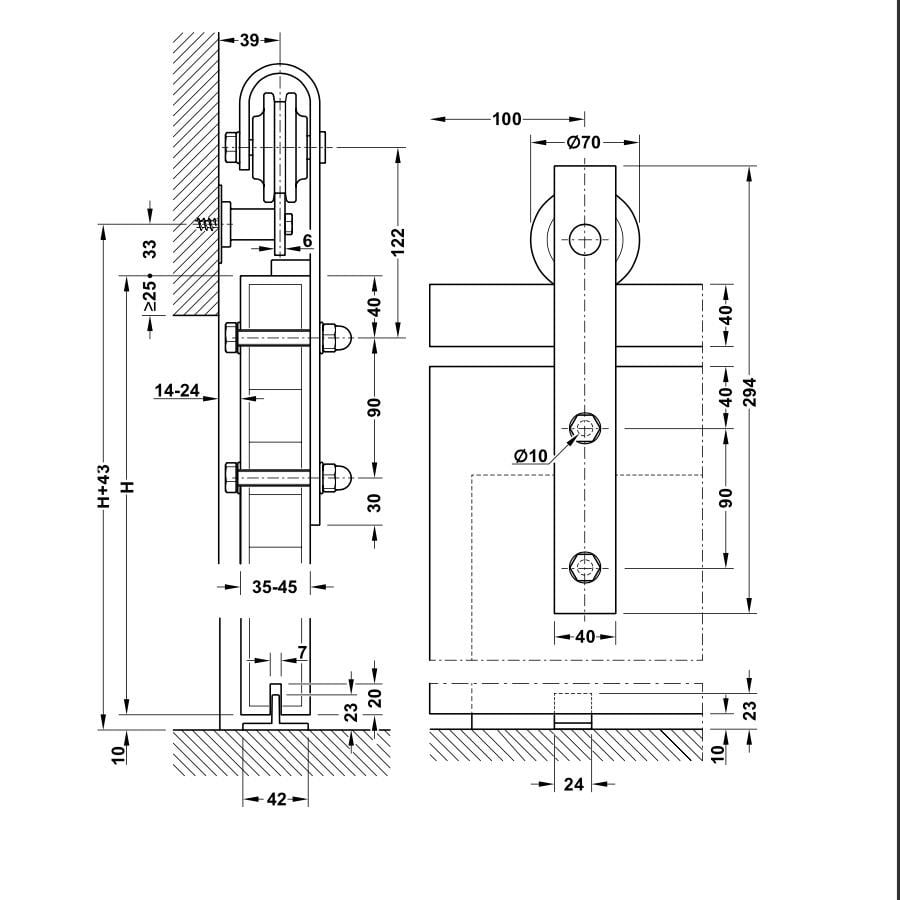 Hafele Kayar Kapı Sistemi Siyah üst yüzeyli rustik klasik görünümlü kayar kapı sistemi 1 kanat ahşap kayar kapılar için Raydan çıkma engelleyicili Maksimum Taşıma Kapasitesi 100 kg 2000mm üst ray ile: 750–1000mm Kanat Geniliğine Uygundur. 2500mm üst ray ile 1001–1250mm Kanat Genişliğine Uygundur. 35 - 45mm kanat genişlikleri için uygundur. 941.32.000