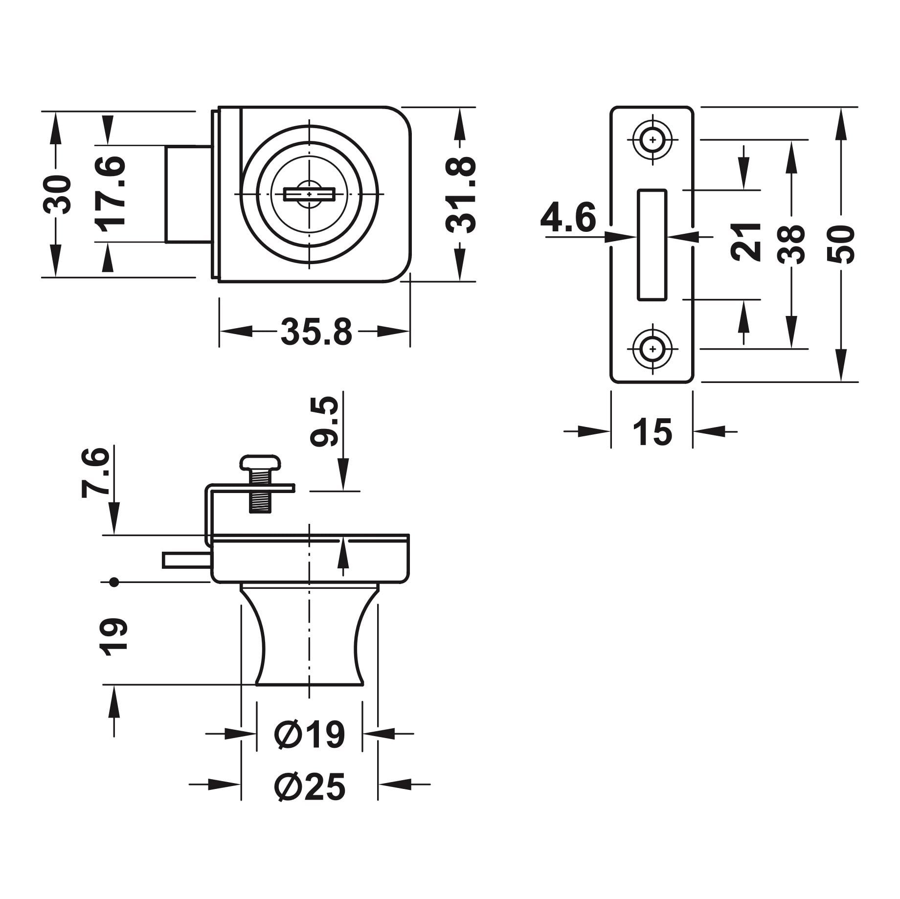 Birlikte verilen parçalar 1 Cam kapak kilidi 2 M4 Bağlantı vidası 1 Kilit karşılığı 2 Eklemli anahtar