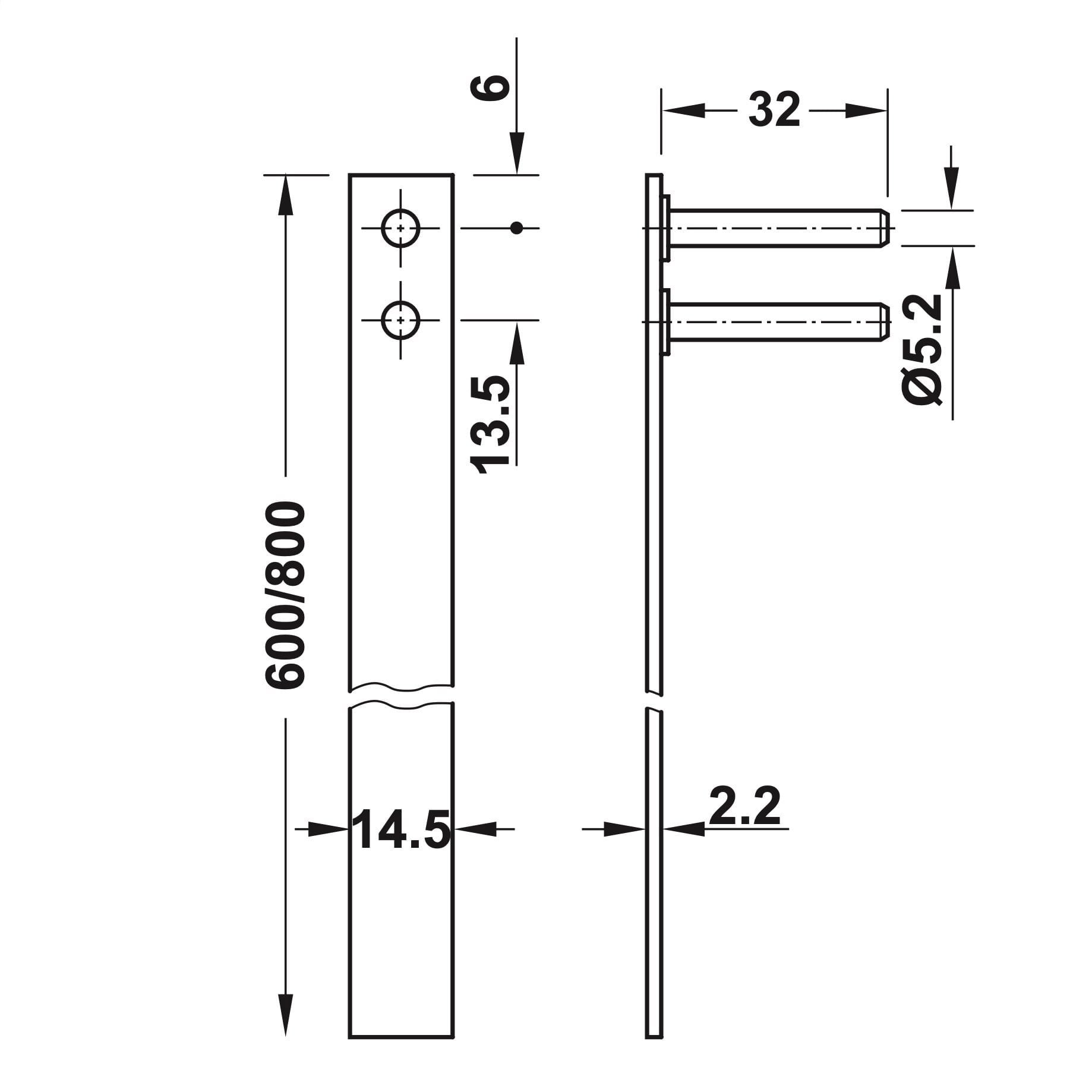 600 mm 2 Çubuk klavuzu 3 Kilitleme pimi 3 Çekmece kilitleme plakası