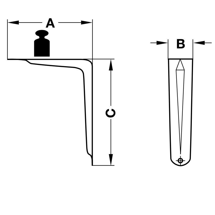 A Ölçüsü 170mm C Ölçüsü 218mm B ölçüsü 36.5mm'dir