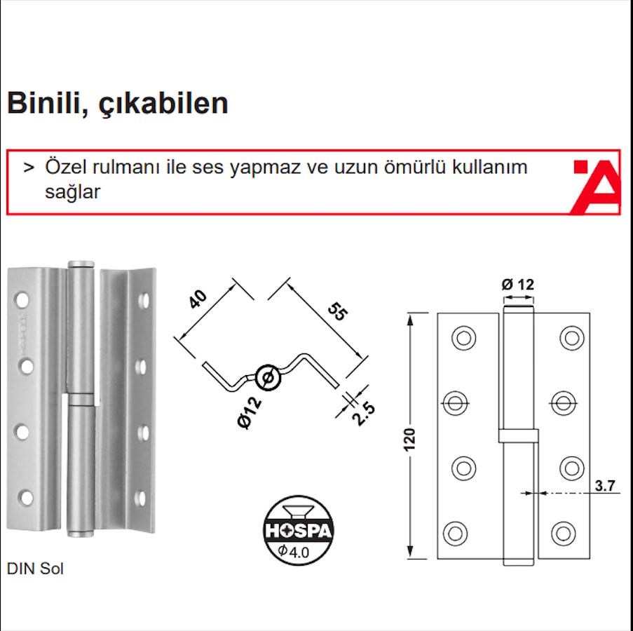 Malzeme: Çelik Kapı ağırlığı: ≤ 40 kg (2 menteşe ile)