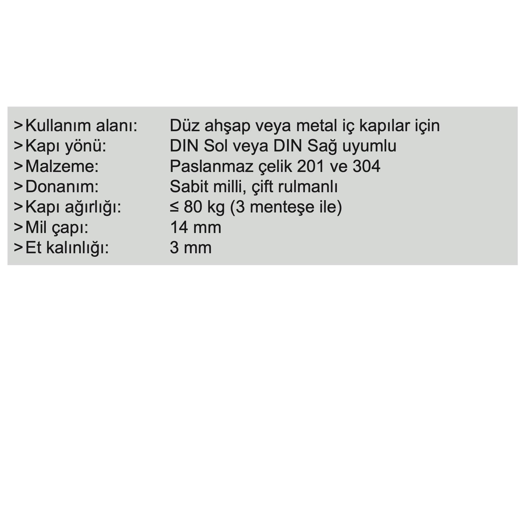 Sabit Milli Yönsüz Kapı Menteşesidir