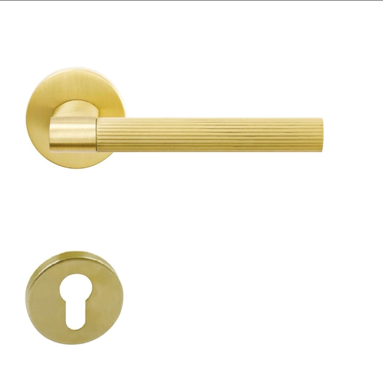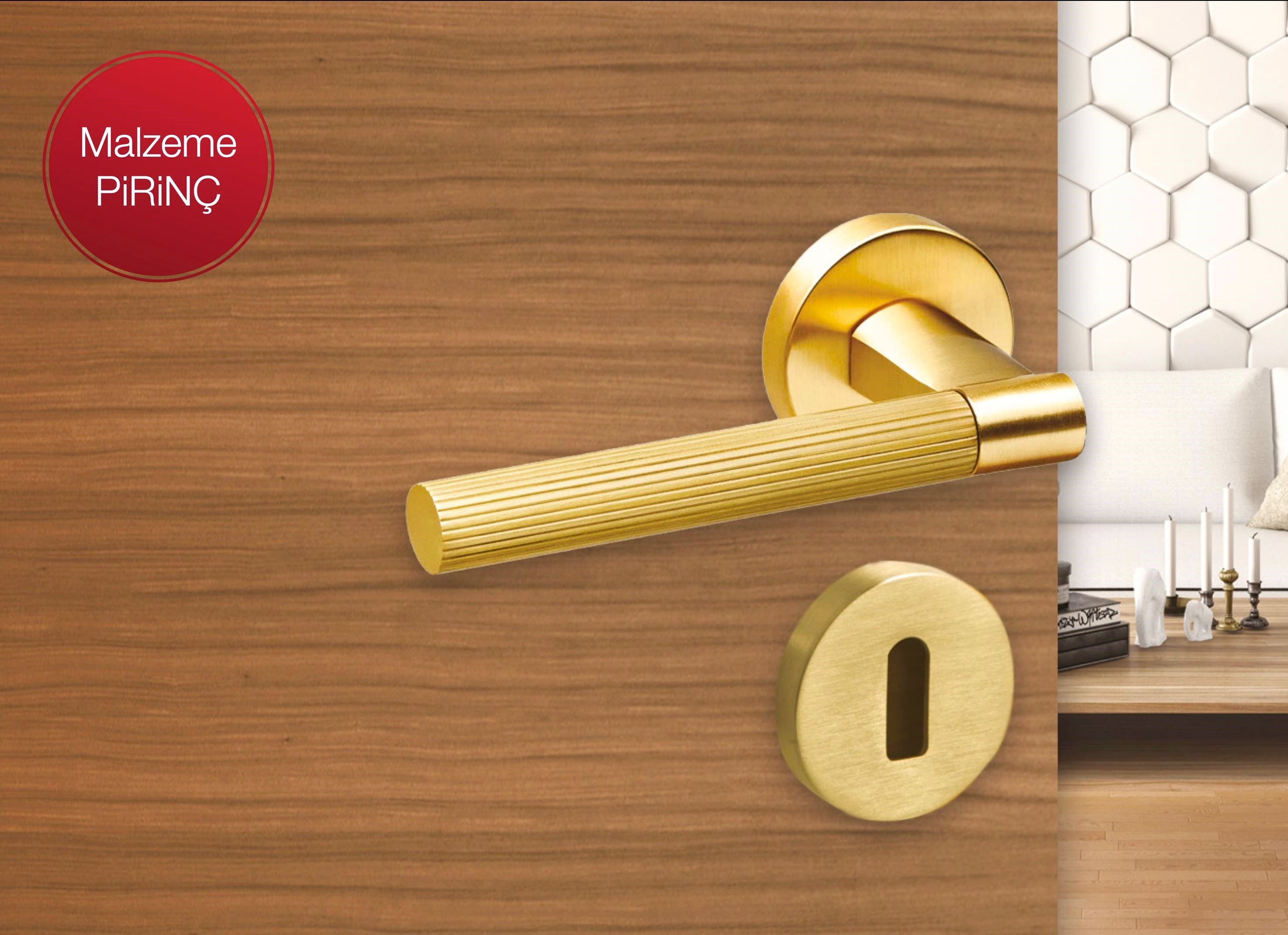 Hafele Bloq Kapı Kolu Barelli Tipi Mat Altın Renkli Kapı Kolu Setinin Hammaddesi Pirinçtir