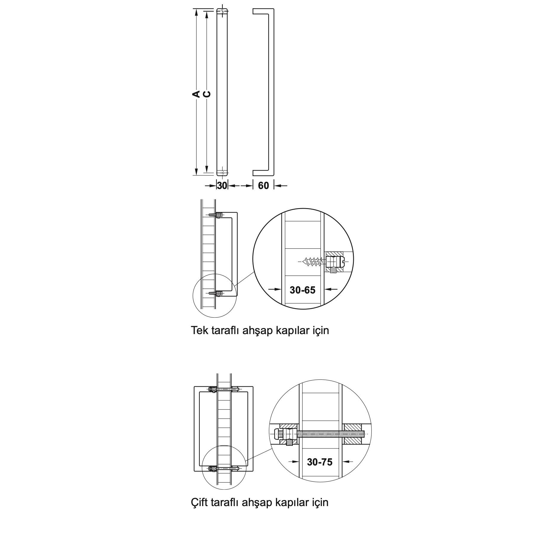 Bağlantı Elemanlarını Keserek Kısaltabilir ve Çift Taraflı Olarak Cam Kapılarınızda da kullanabilirsiniz.. A Ölçüsü 465mm