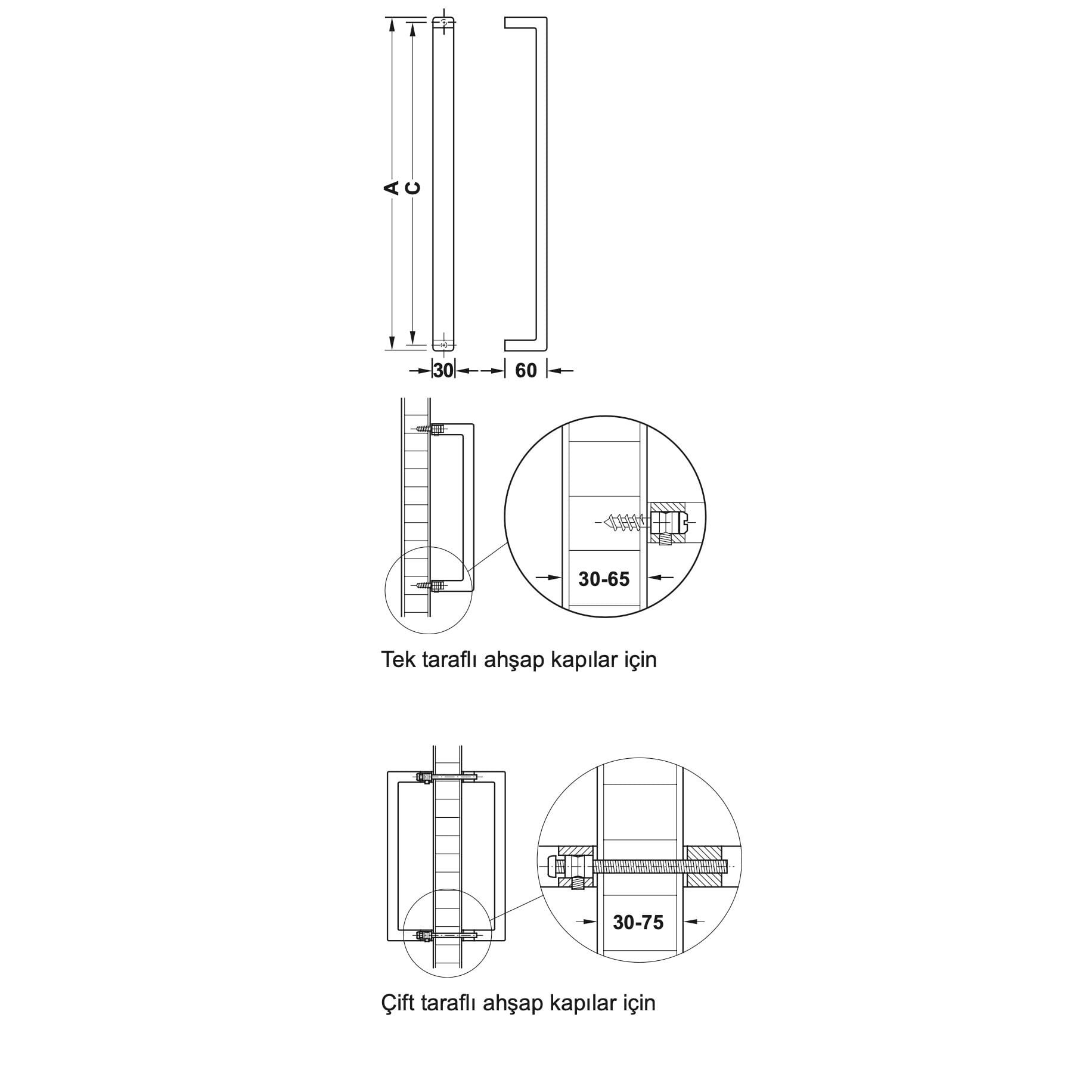 Ahşap kapılar için montaja uygun gizli vidalanan bağlantı elemanları set içeriğine dahildir