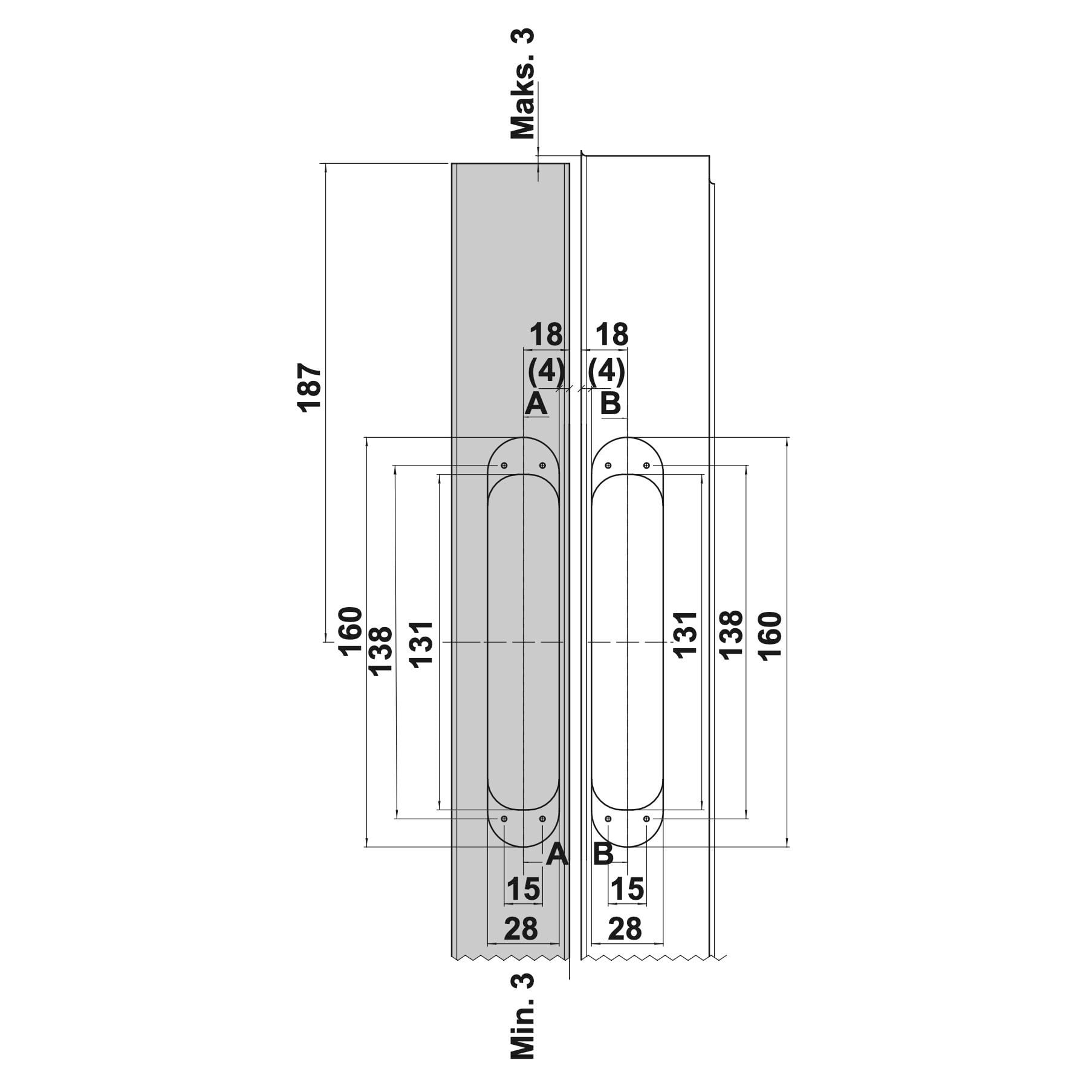 Kanat kalınlığı: ≥ 40 mm