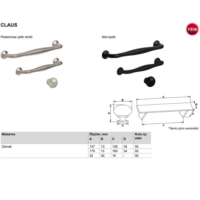 Hafele Claus Kulp Paslanmaz Çelik Renkli 160mm