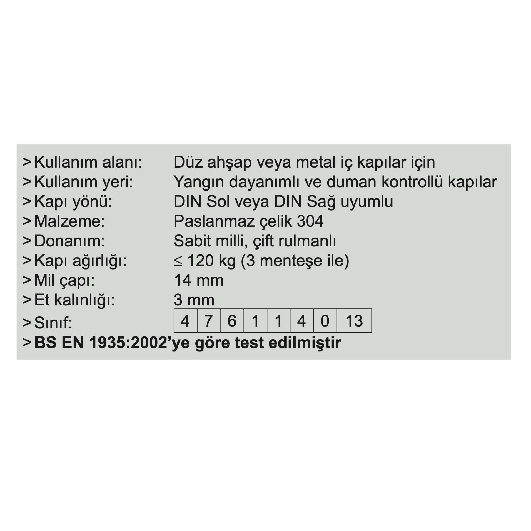 Sabit Milli Yönsüz ve Yangın Dayanımlı Kapılar İçin de Uygun Kapı Menteşesidir