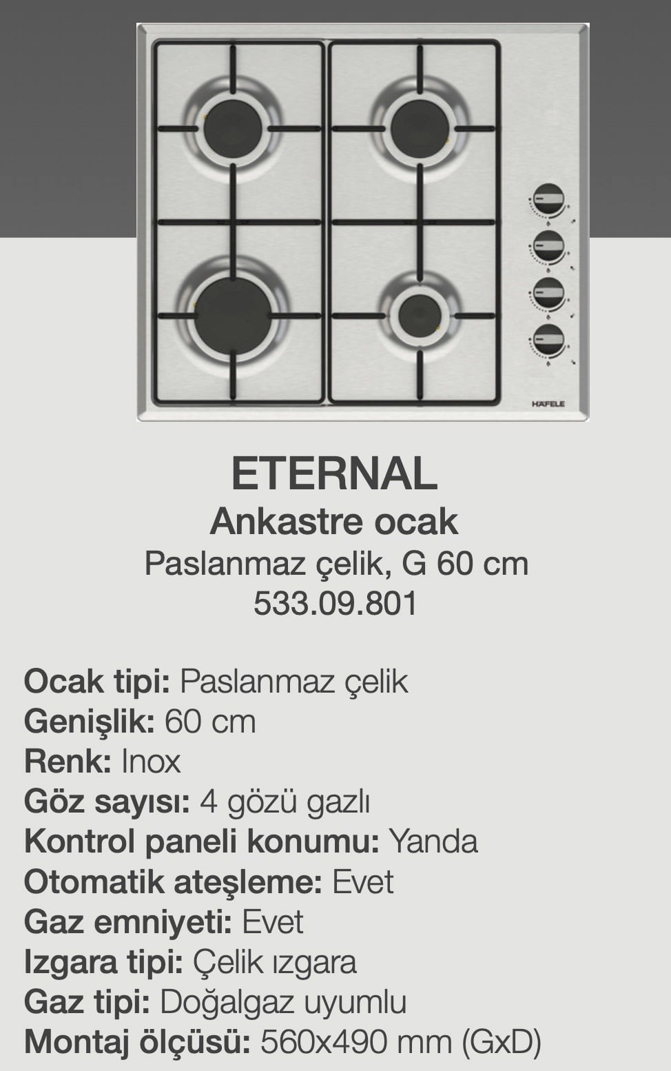 Hafele Eternal Ankastre Ocak Paslanmaz Çelik