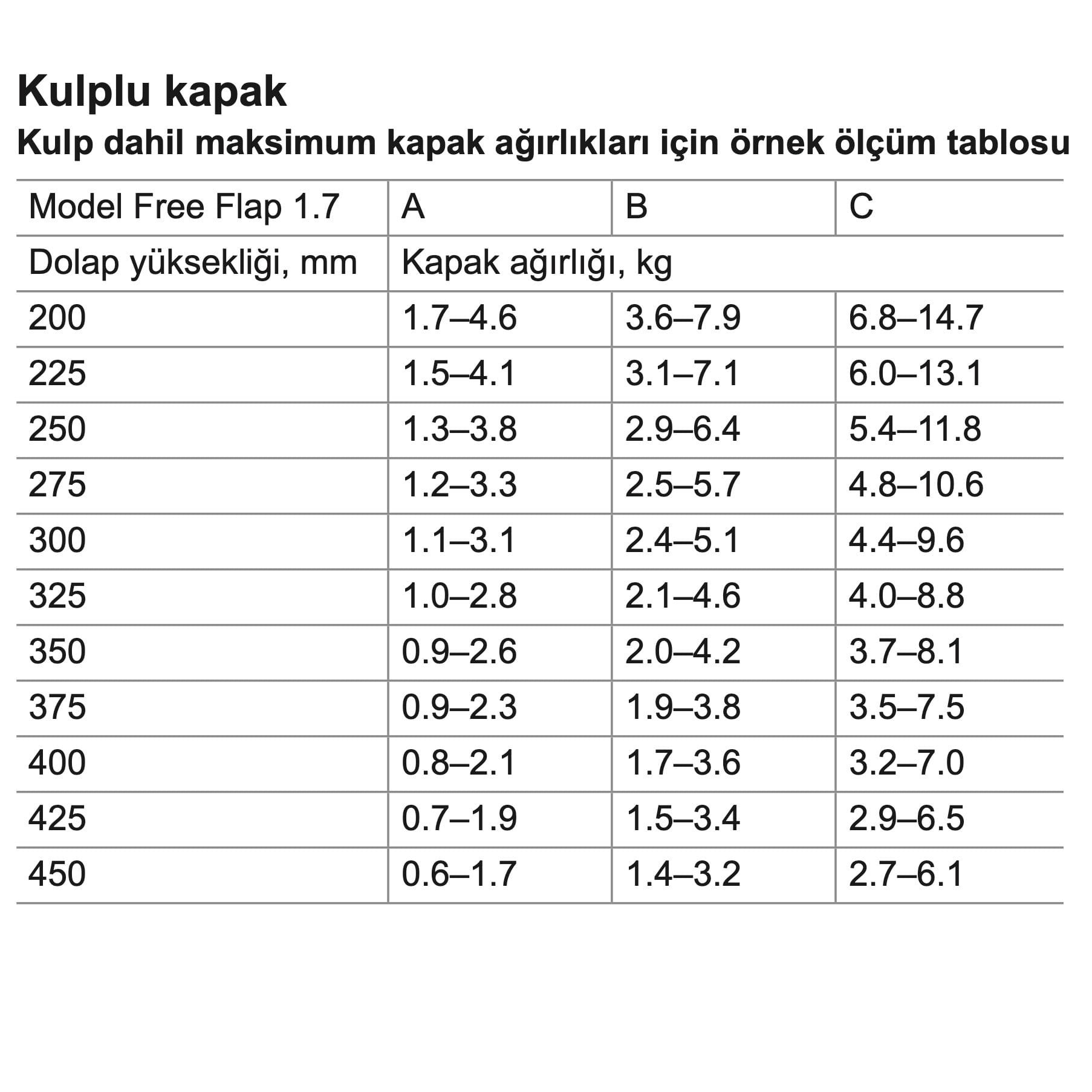 Hafele Free 1.7 Makas Seti - Gri Model A. Kulplu ve kulpsuz (bas-aç) kalkar kapak sistemidir