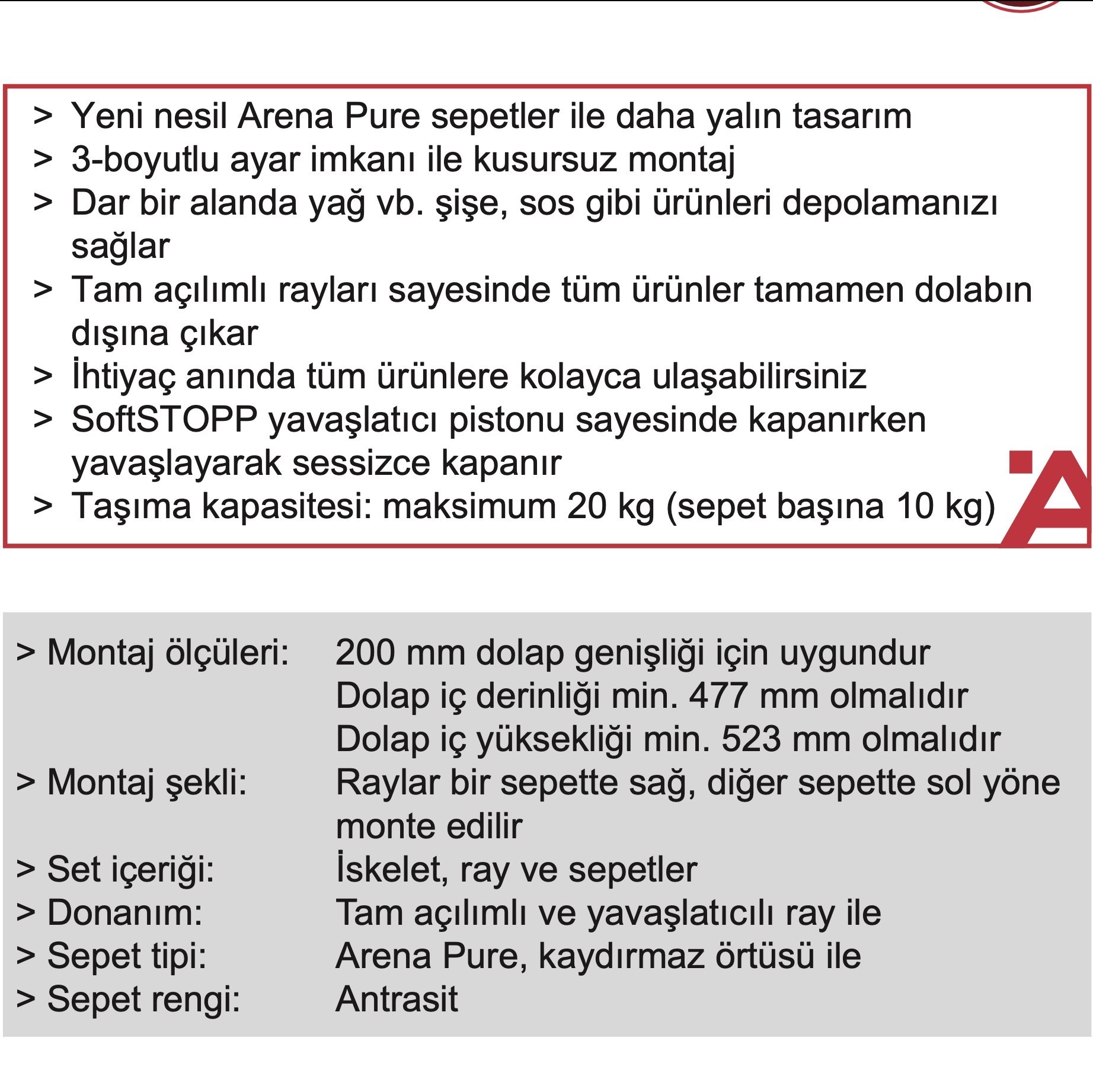 Taşıma kapasitesi: maksimum 20 kg (sepet başına 10 kg)