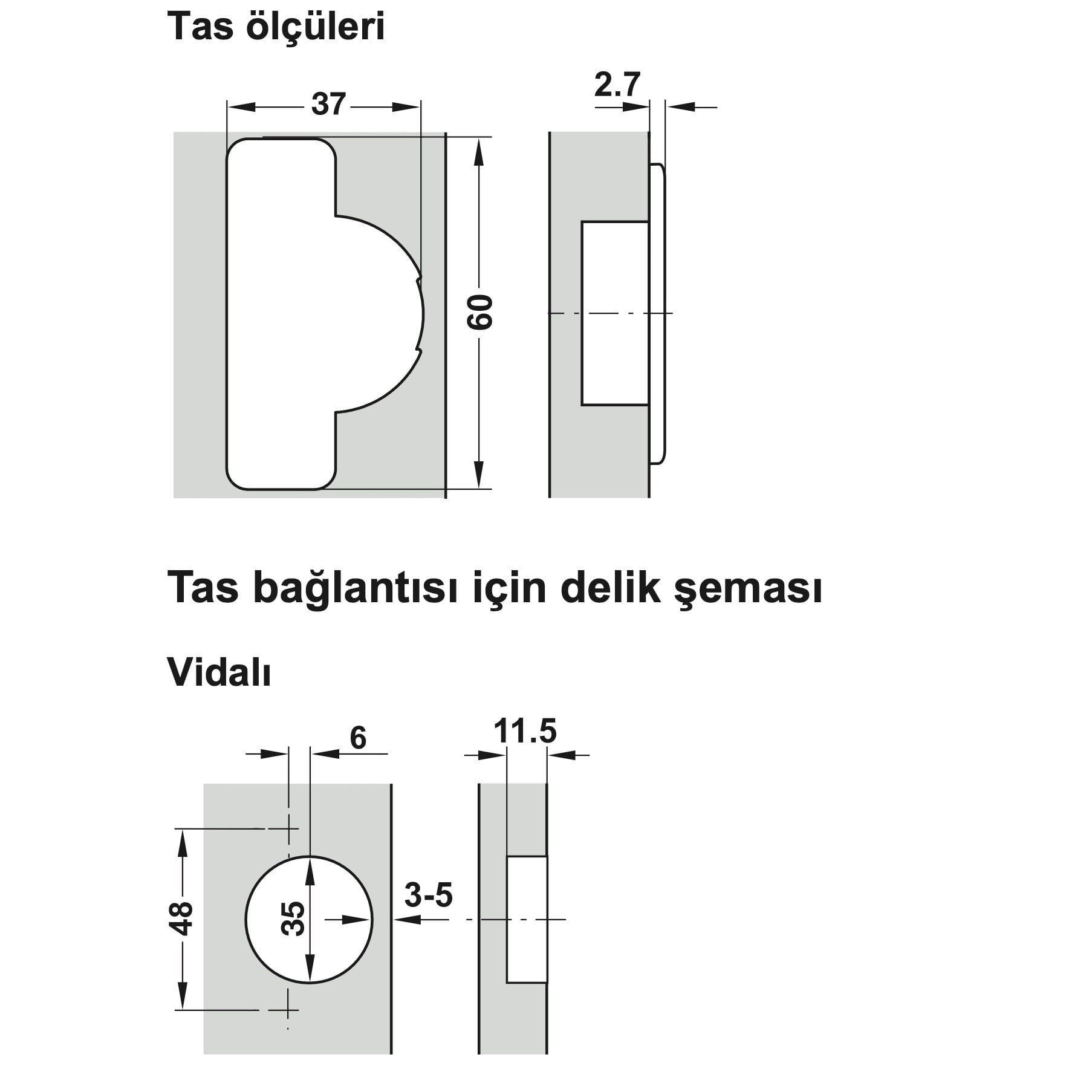 Malzeme: Tas ve menteşe kolu çelik