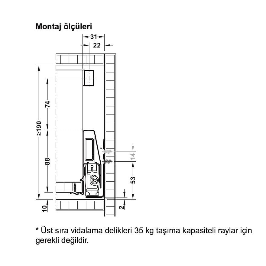 Hafele Metal Yanaklı Çekmece Sistemi Ürün Serisidir