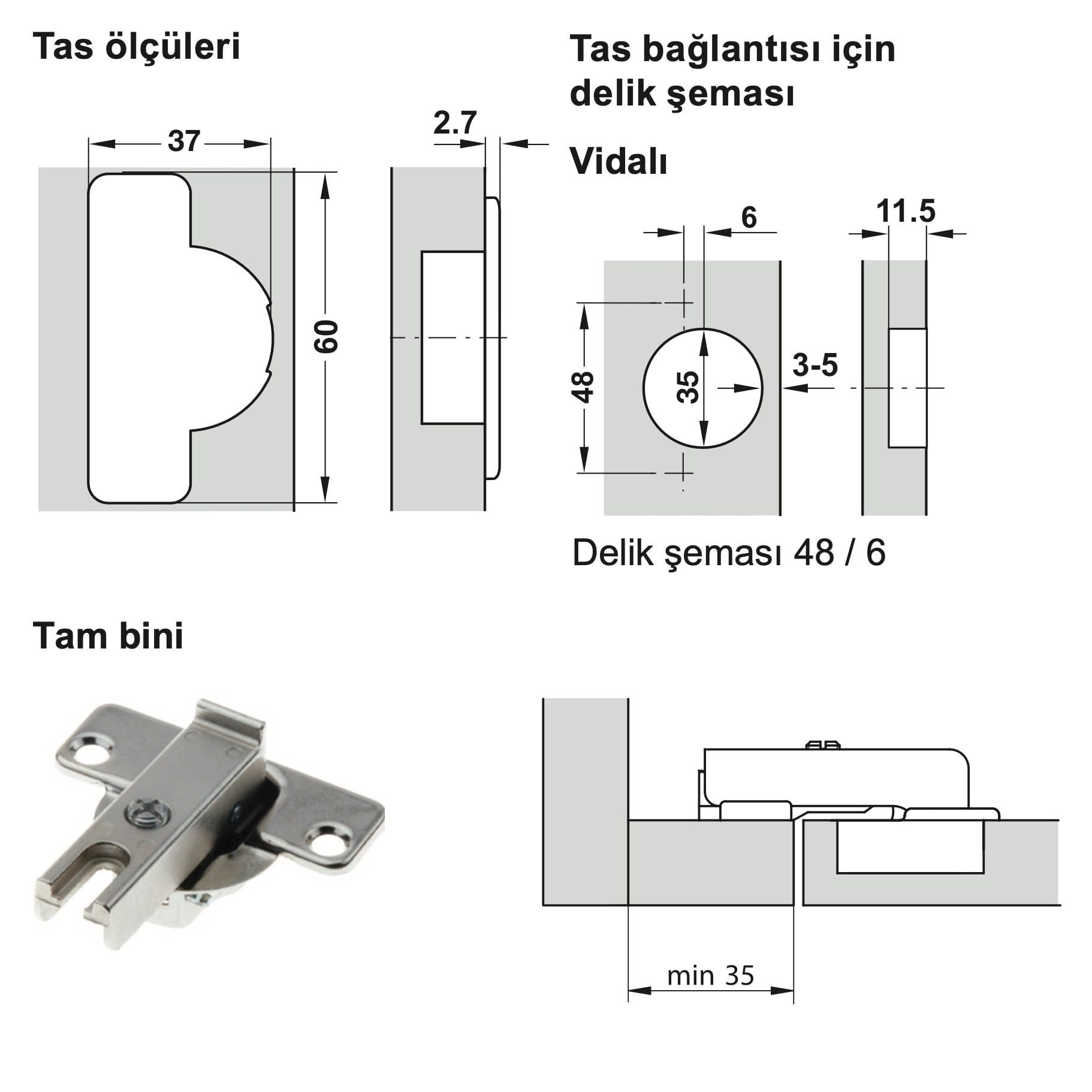 Sadece 312.06.500 kodlu kör köşe menteşesi için uygundur