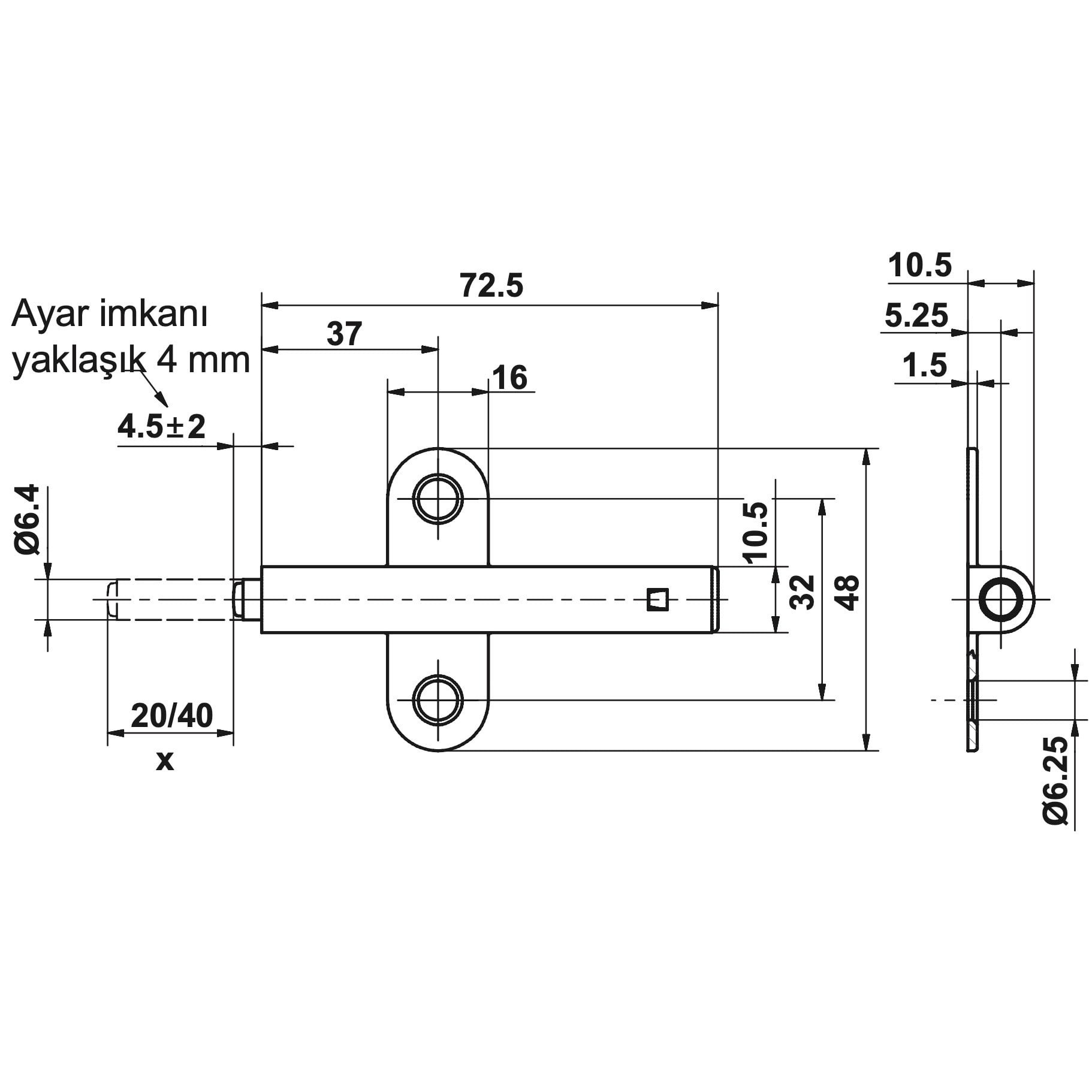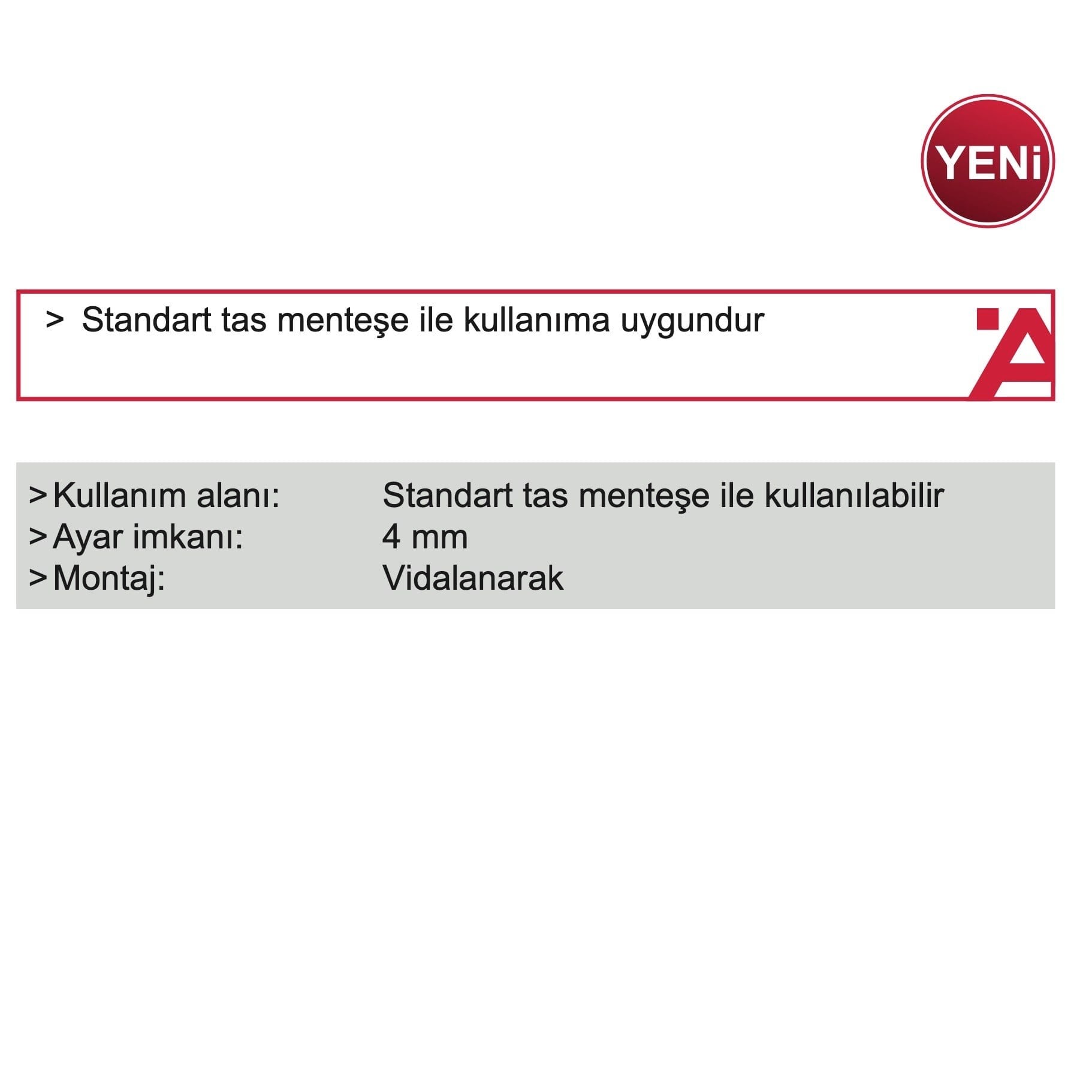 Ayar İmkanı +- 4mm Geniş ve yüksek kapaklar için fazla sayıda kullanılmalıdır