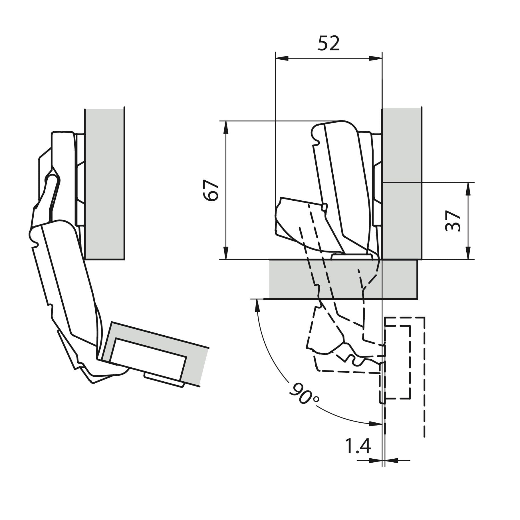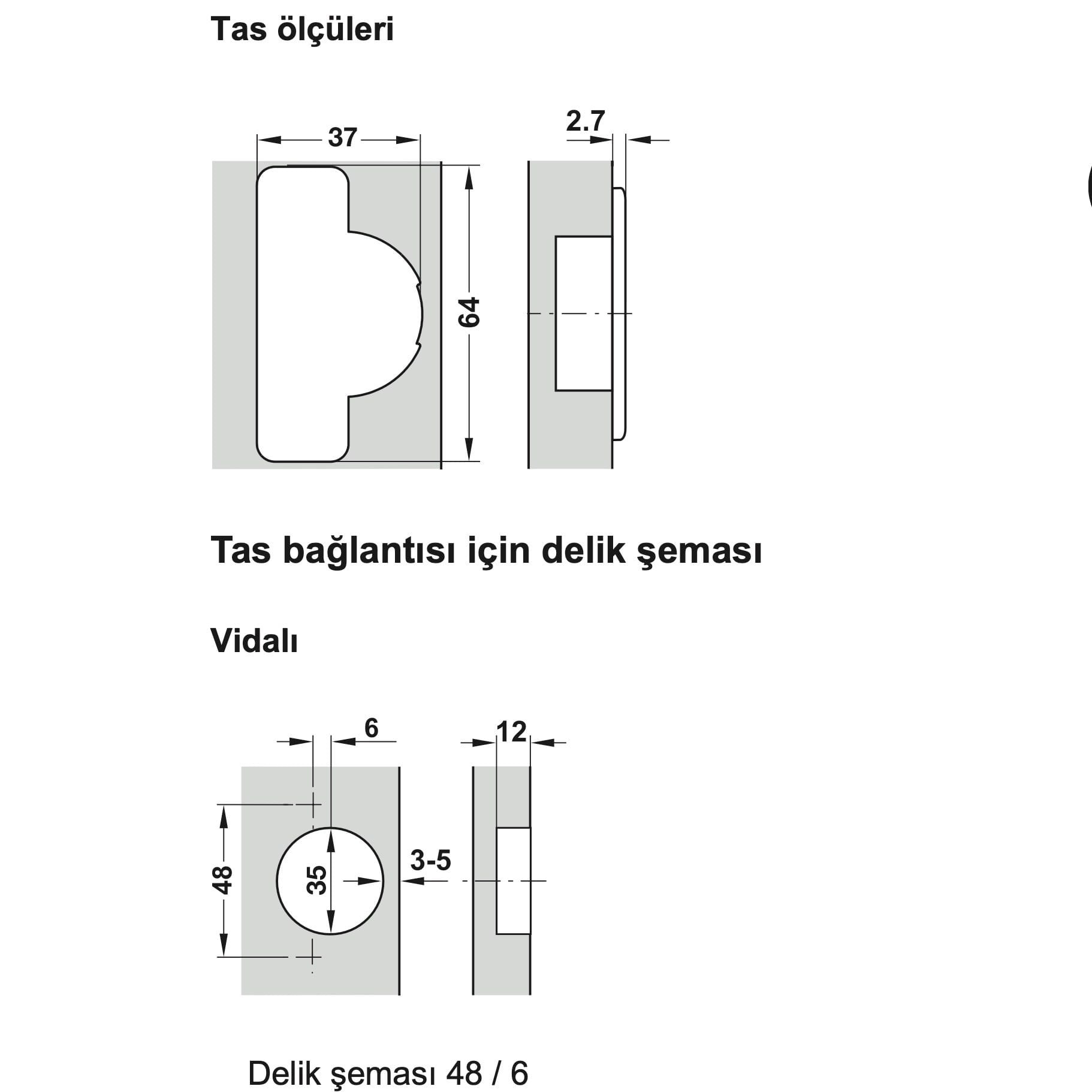 Ayarlama: 3 yönde ayarlanabilir (uygun menteşe tabanı ile)