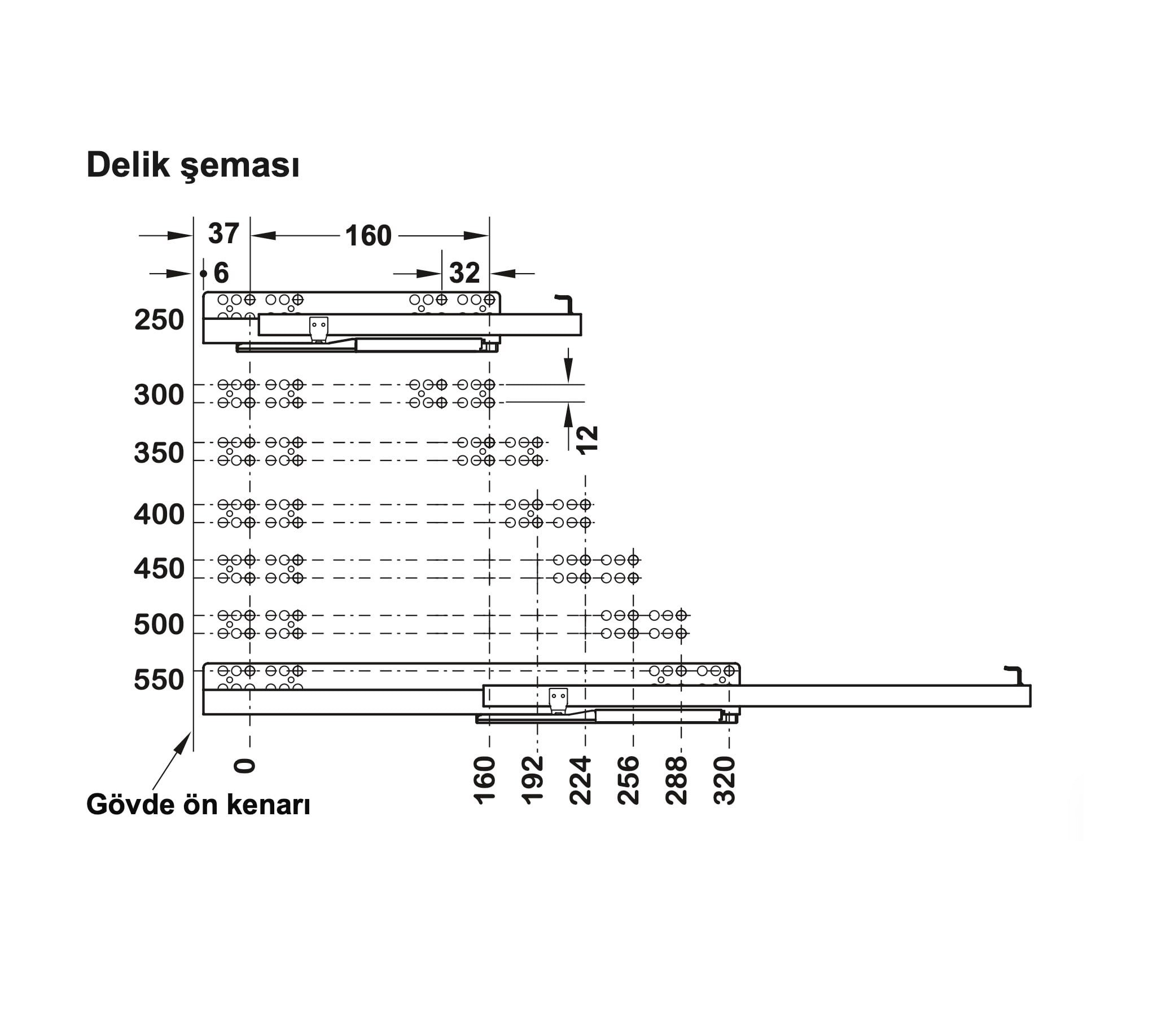 18mm ahşap kalınlığına uygun 32 mm delik sistemine uygundur ve vidalanarak monte edilir