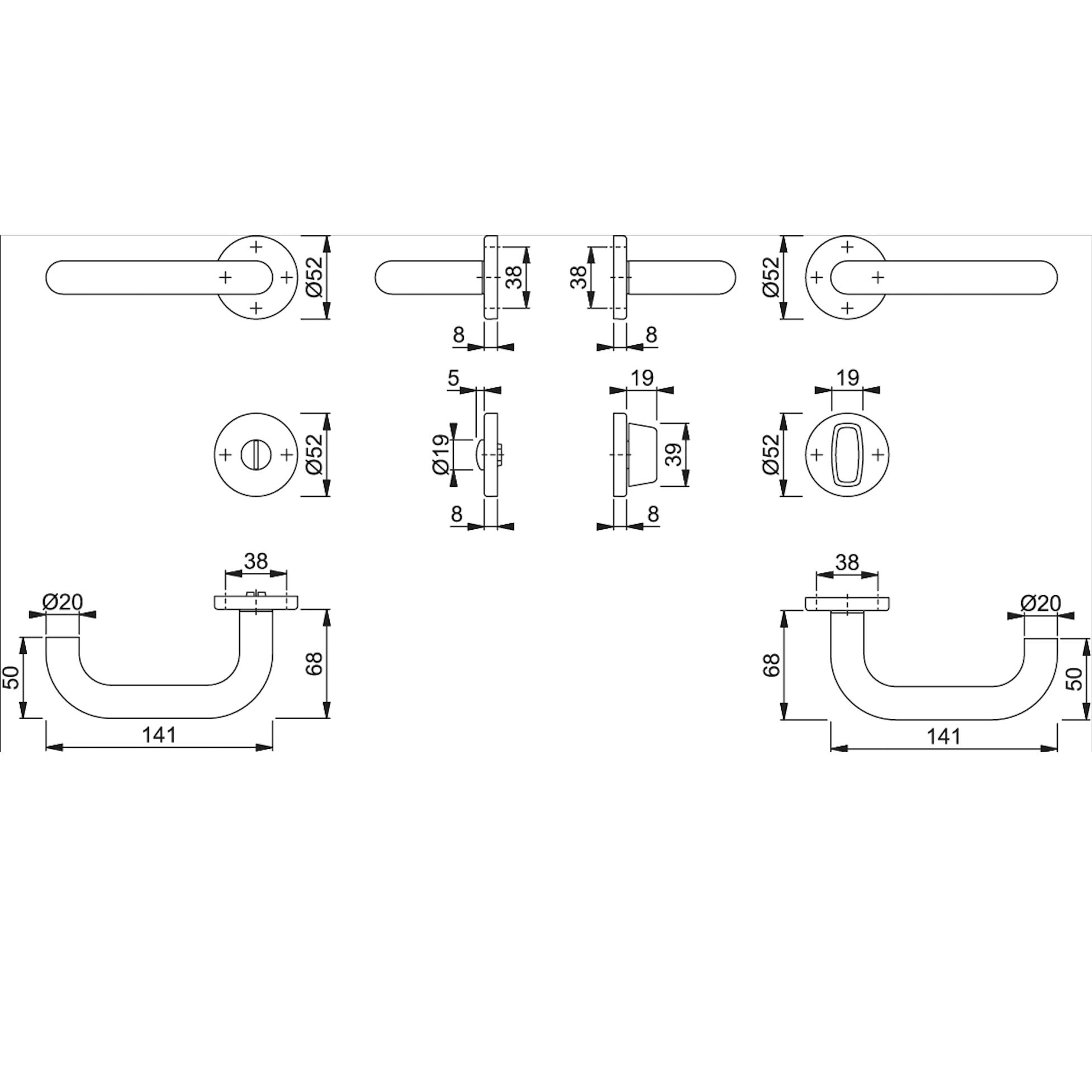 Hoppe Paris Kapı Kolu Seti WC (Banyo) Tipi Paslanmaz Çelik Renkli