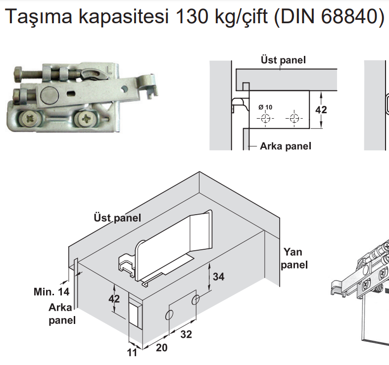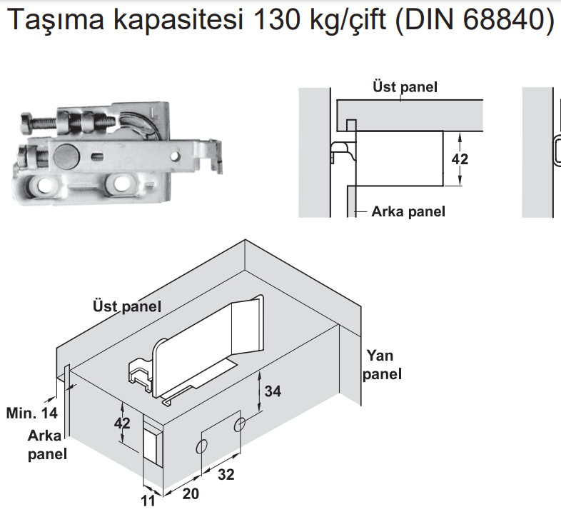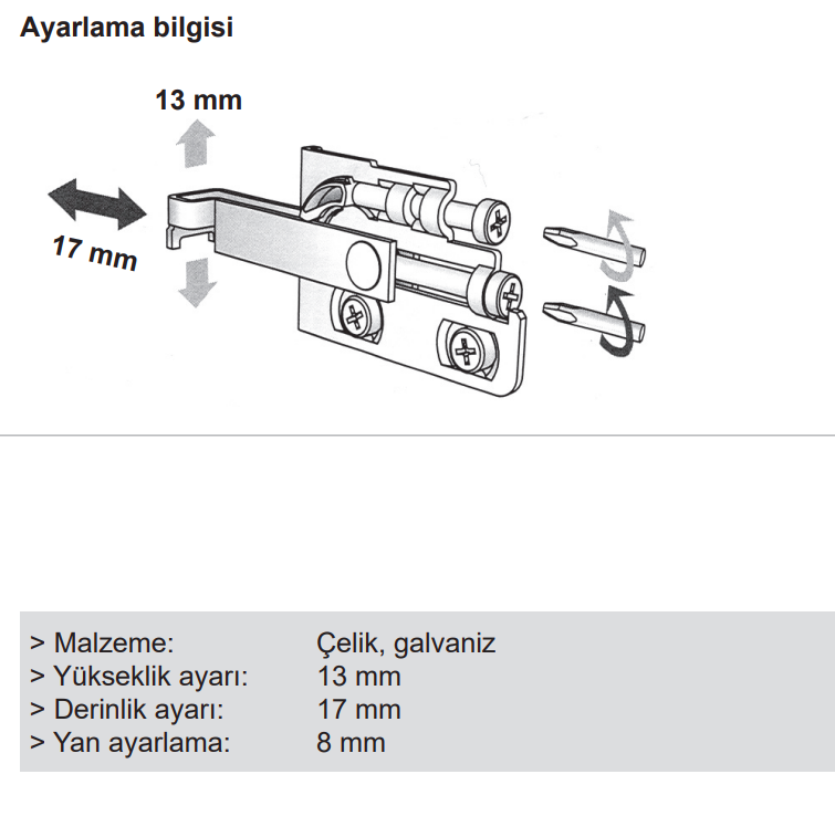 13mm yükseklik ayar imkanı sunar 17mm derinlik ayar imkanı sunar 8mm yatay ayar imkanı sunar 3 boyutlu ayar imkanı sunar